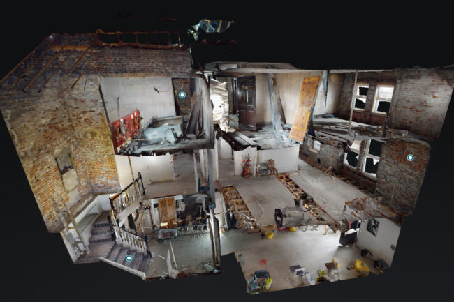 Potential uses could include recording fire damage, public buildings(to allow emergency services to easily see access points, potential escape routes etc…), sensitive heritage building interiors where actual public visits could potentially be damaging.