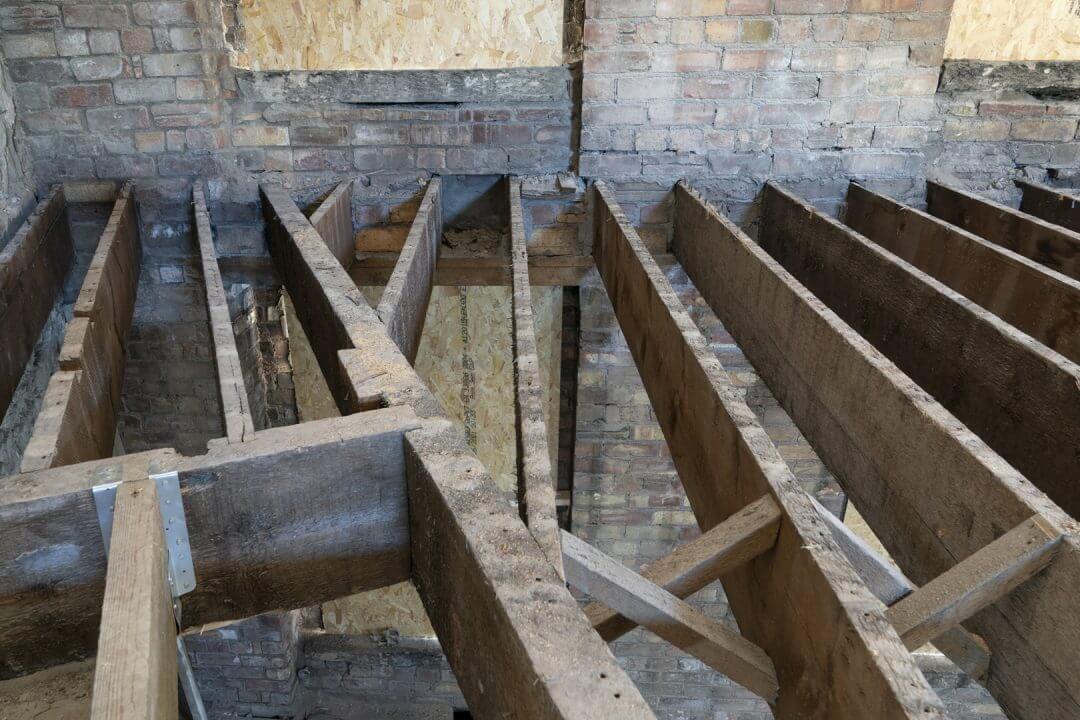 An oak beam from a Carrickfergus Heritage Initiative project. This oak beam supported the first floor flooring and was still structurally sound. The tree started growing around 1470 and the carpentry around 1640. Photos like this can be linked into the Matterport 3D Virtual Reality models to create an immersive and detailed record of all of the key aspects of any property.